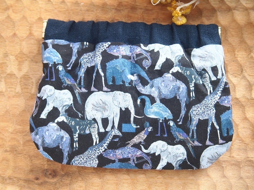☆本体表地にリバティ【Queue for the Zoo】使用したバネポーチです。