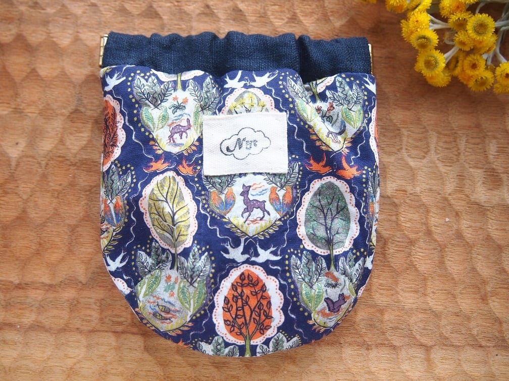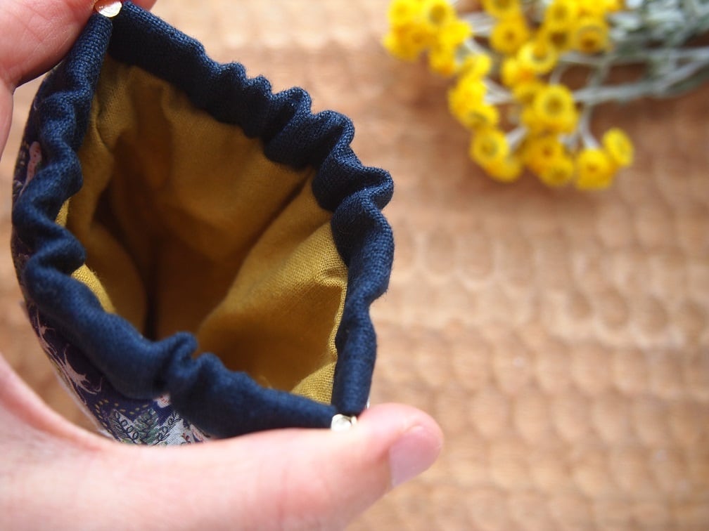 ☆口布はネイビーのリネン、裏地はマスタードのコットンリネンです。