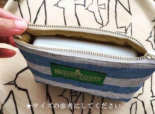 (ファスナーが他のボーダーリネンポーチと違います。玉付きファスナー使用)