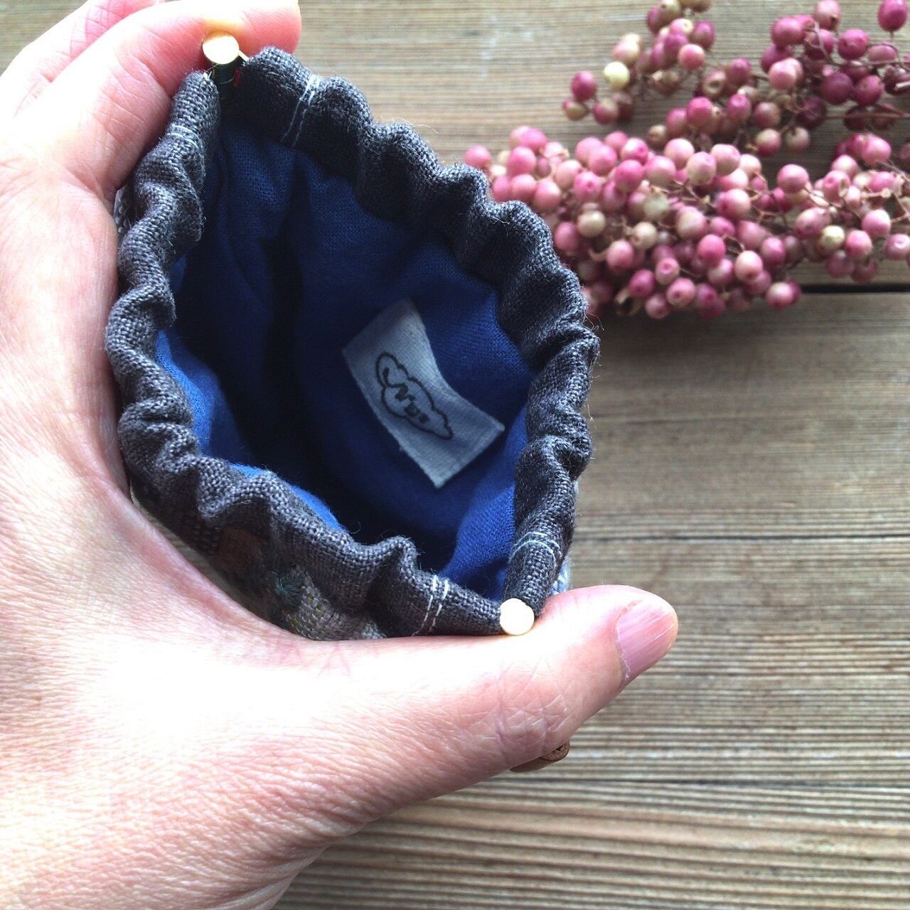 ☆口布はグレーのリネン、裏地はブルーのコットンリネンです。