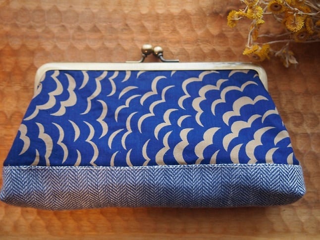 プリント地(魚柄)を使用したがまぐちポーチです。