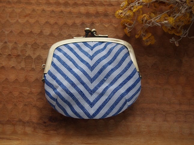 裏地にグレーのリネンを使用したがまぐちポーチです。