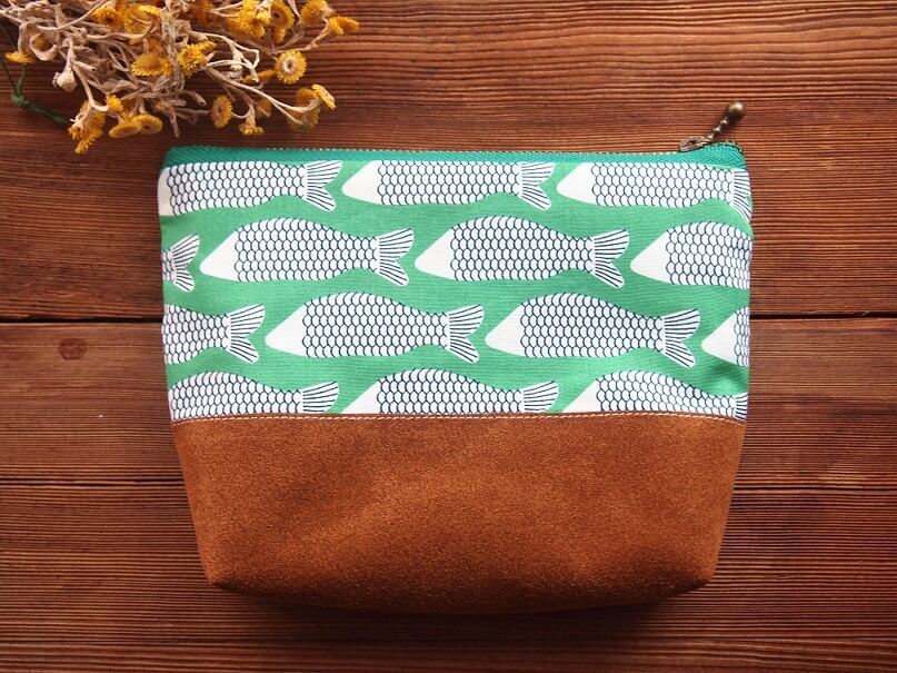 人工スエードを使用したファスナーポーチです。