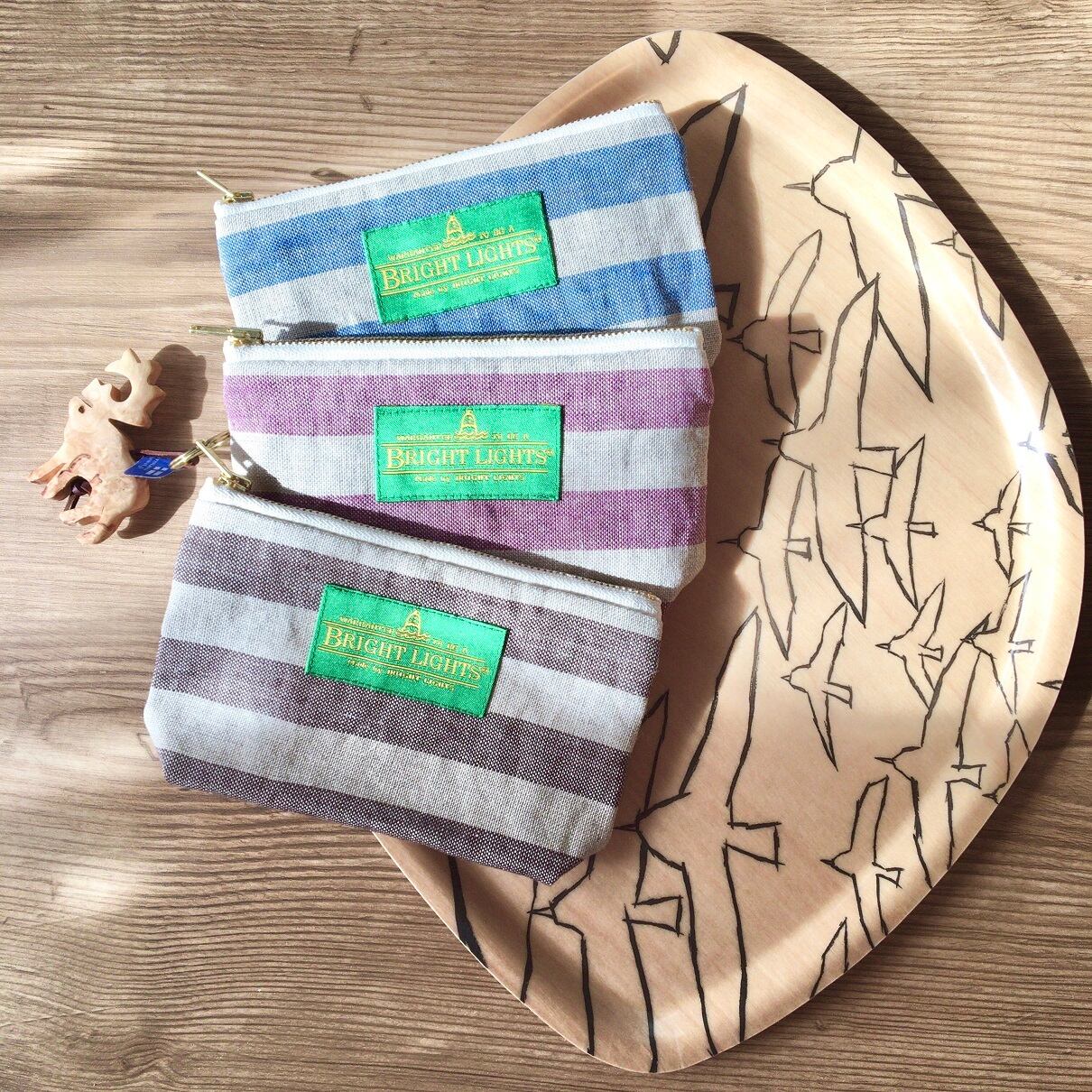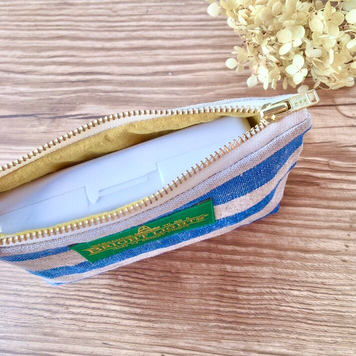 ☆表地にボーダーのポーランドリネンを使用したファスナーポーチです。